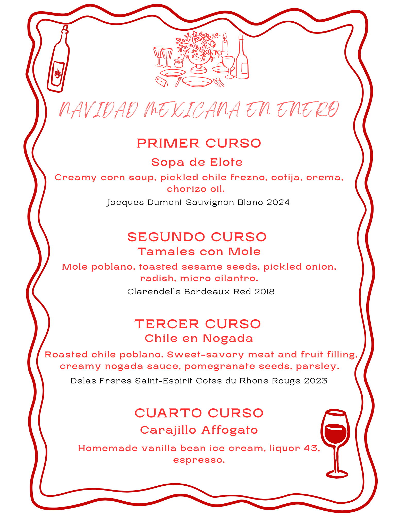 Our “Navidad Mexicana en Enero” celebration is just around the corner! What a wonderful way to reconnect with friends and extend the holiday spirit. As always, every dish will be expertly prepared by our chef, Lluvia Diaz Sanchez, and her talented team.